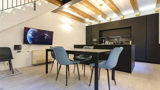 Spacious and elegant apartment in a historic building in the center of Bologna, just renovated with fine finishes. Composed of entrance to relaxation area with sofa bed and adjacent bathroom, large living area with fully equipped kitchen and island hob, access to private terrace, upper floor with double bedroom, twin bedroom with two single beds and large bathroom. Air conditioning, unlimited wifi internet. Towels and bed linens included.
