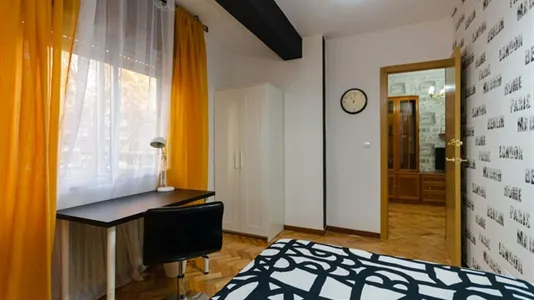 This is a comfortable 1st floor, 6-bedroom apartment on Calle Manuel Azaña, Madrid. It boasts stylishly furnished bedrooms, a modern kitchen, and a cute dining area.
