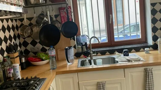 This room, located in a beautiful townhouse, offers an elegant setting with high, moulded ceilings. It is furnished with 4 single beds, a bedside table, a chest of drawers and a built-in wardrobe for your clothes. A desk is also available for your use. The fully equipped kitchen is located next to the room and bathroom is located on the mezzanine level. A practical back courtyard on the ground floor provides a pleasant outdoor space. A place that combines comfort and convenience.